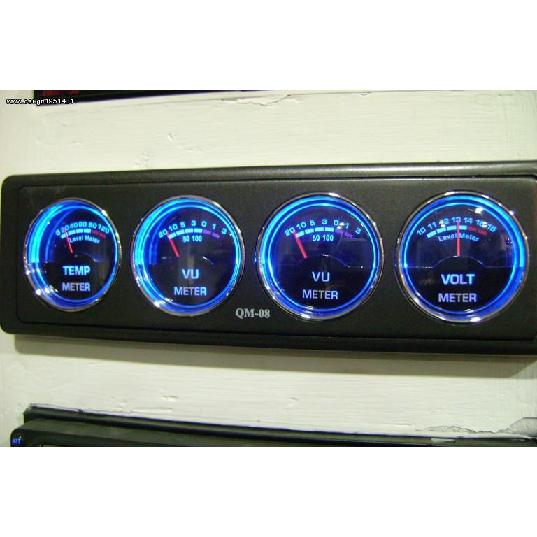 VU METER ΑΥΤΟΚΙΝΗΤΟΥ QM-08.SUPER ΠΡΟΣΦΟΡΑ. Περιγραφή VU METER AYTOKINHTOY ME ΦΩΤΙΣΜΟ LED BLUE,ΜΕΤΡΗΤΗΣ ΓΙΑ ΜΠΑΤΑΡΙΑ( VOLT METER ) , ΘΕΡΜΟΚΡΑΣΙΑ ΕΝΙΣΧΥΤΗ ( TEMP METER ) KAI THΝ ΙΣΧΥΗ ΤΟΥ ΕΝΙΣΧΥΤΗ ( VU METER ) ΠΕΡΙΕΧΕΙ ΚΑΙ ΒΑΣΕΙΣ ΣΤΗΡΙΞΗΣ!!! ΠΟΛΥ ΚΑΛΗΣ ΠΟΙΟΤΗΤΑΣ.