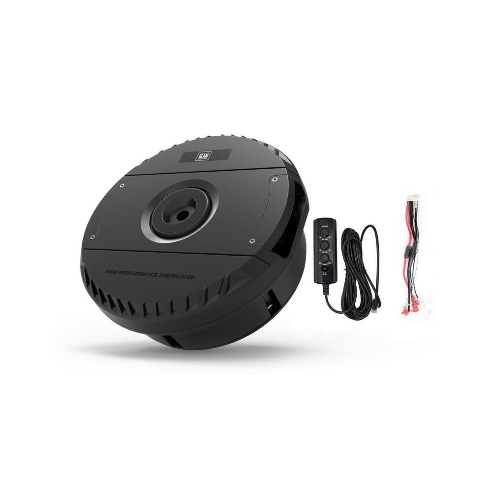 Die cast aluminium enclosure with 27 cm (11”) spare tire active subwoofer with integrated 300 W amplifier