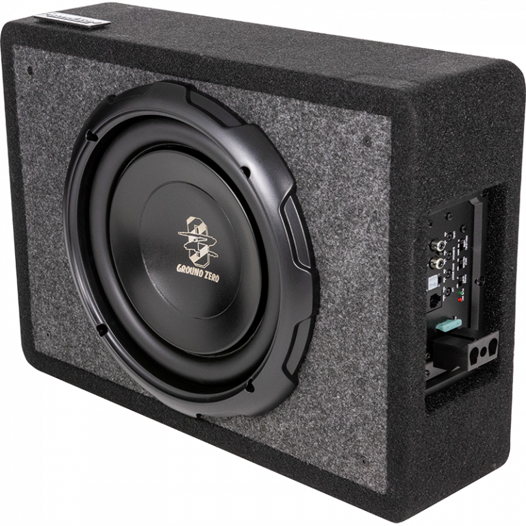 Car specific 20 cm / 8″ subwoofer loaded active enclosure for vehicles with limited space